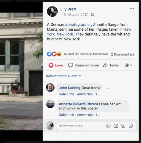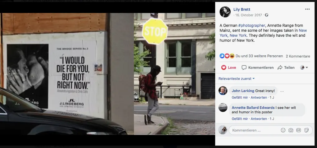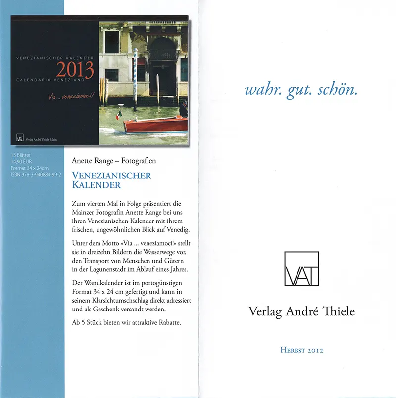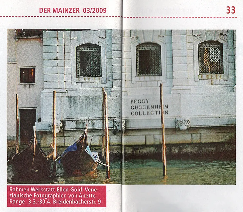 ist eine weit gereiste Fotografin; die vorgestellten Fotografien stammen größtenteils aus ihren Lieblingsstädten Venedig und New York. Sie zeigen ihr bevorzugtes Thema: Momente des täglichen Lebens, die das Lebensgefühl der Menschen in der Stadt einfangen. Ihr Fokus auf die eher kleinen Momente des Lebens wird mittlerweile von zahlreichen Käufer und Käuferinnen aus dem In- und Ausland geschätzt.